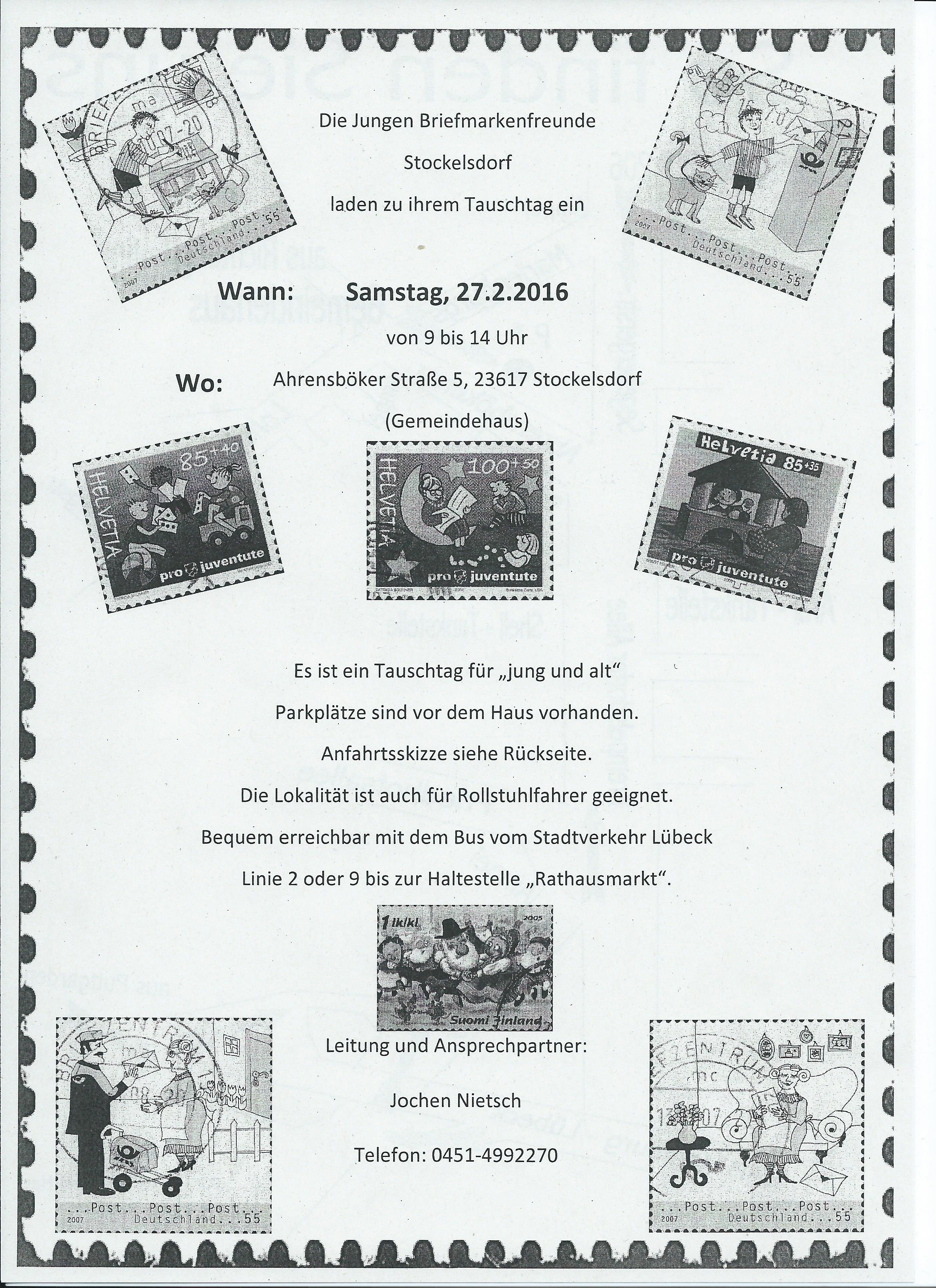 die Vorbereitungen gehen in den Endspurt, es gibt noch reichlich „Arbeit“. ;) In 4 Tagen ist es soweit und wir freuen uns schon auf einen hoffentlich für jeden erfolgreichen Tauschtag. Besonders freuen wir uns auf die Premiere mit dem ersten Sonderstempel der Geschichte für Stockelsdorf passend zur diesjährigen Wohlfahrtsausgabe der Post!