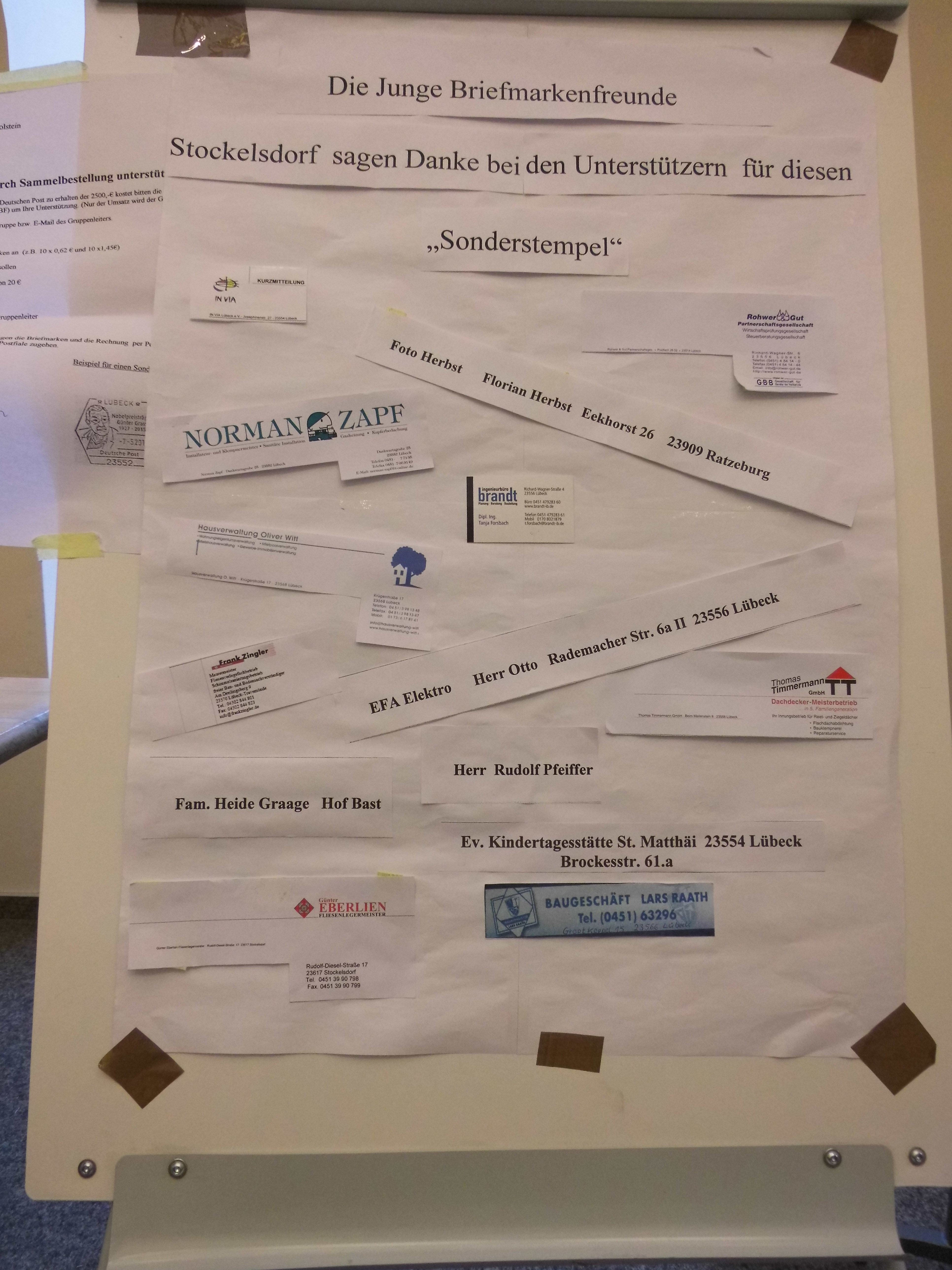 Hier noch die Dankestafel für die Firmen, die uns bei der Realisierung des Sonderstempels unterstützt haben: