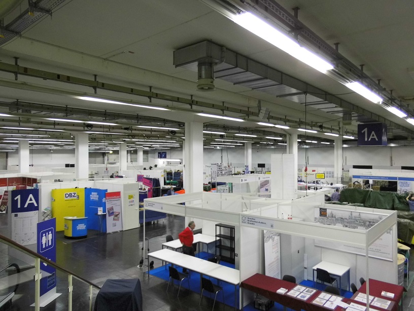 Hier noch einige Eindrücke aus der Messehalle vor der Eröffnung. Die Stände sind teilweise noch abgedeckt und unbesetzt und warten auf die Besatzungen und später die Kunden: