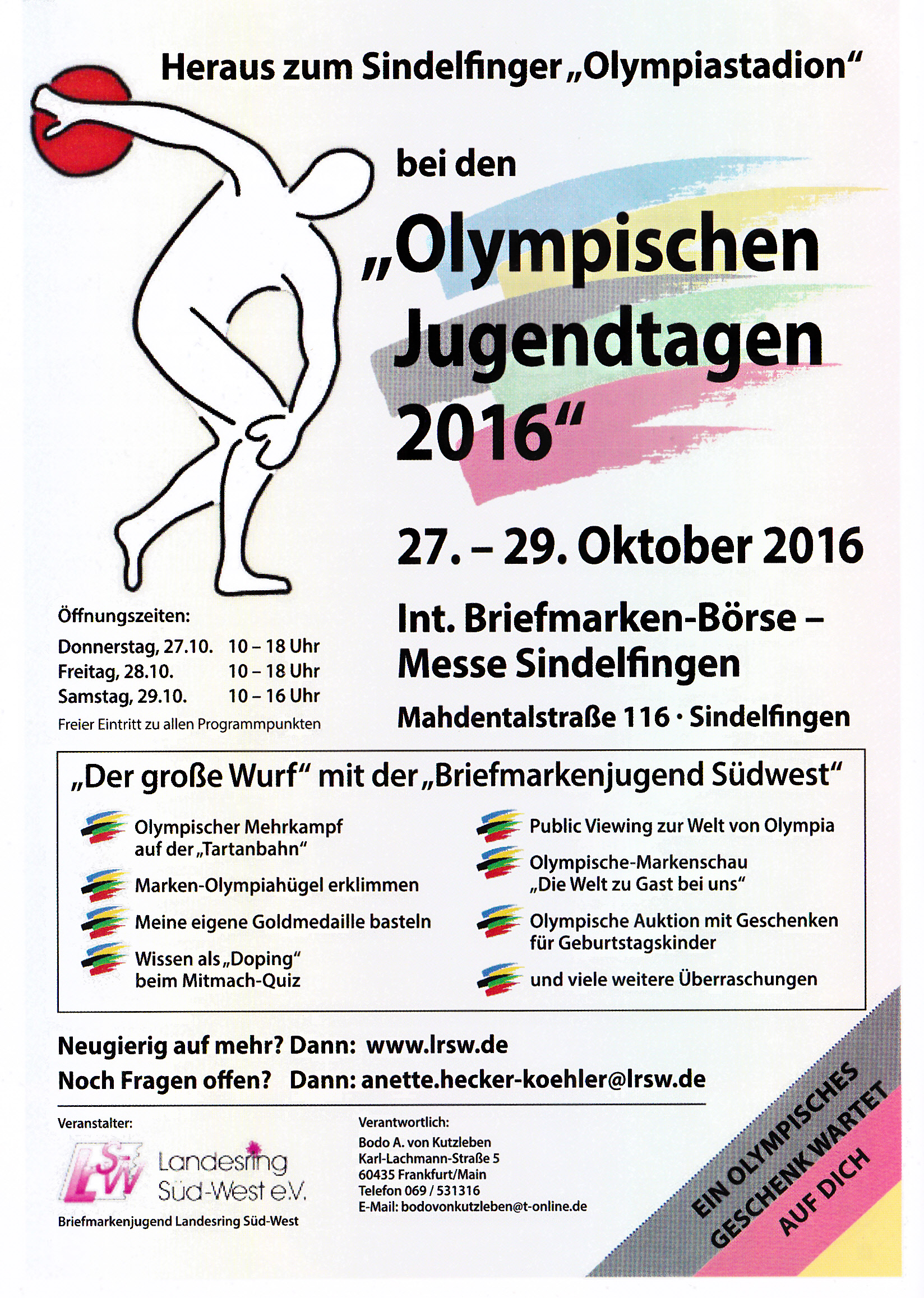 Mit einem abwechslungsreichen Programm bietet der Landesring Südwest auf der Briefmarken-Börse seinen jungen Besuchern wieder den perfekten Messe-Spaß im Obergeschoss …
