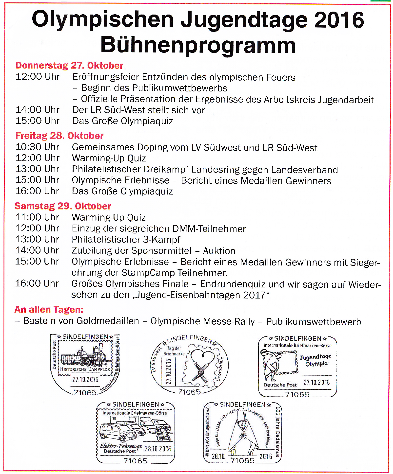 und hier auch der genaue Terminplan der Jugendtag und die Sonderstempel zur Börse: