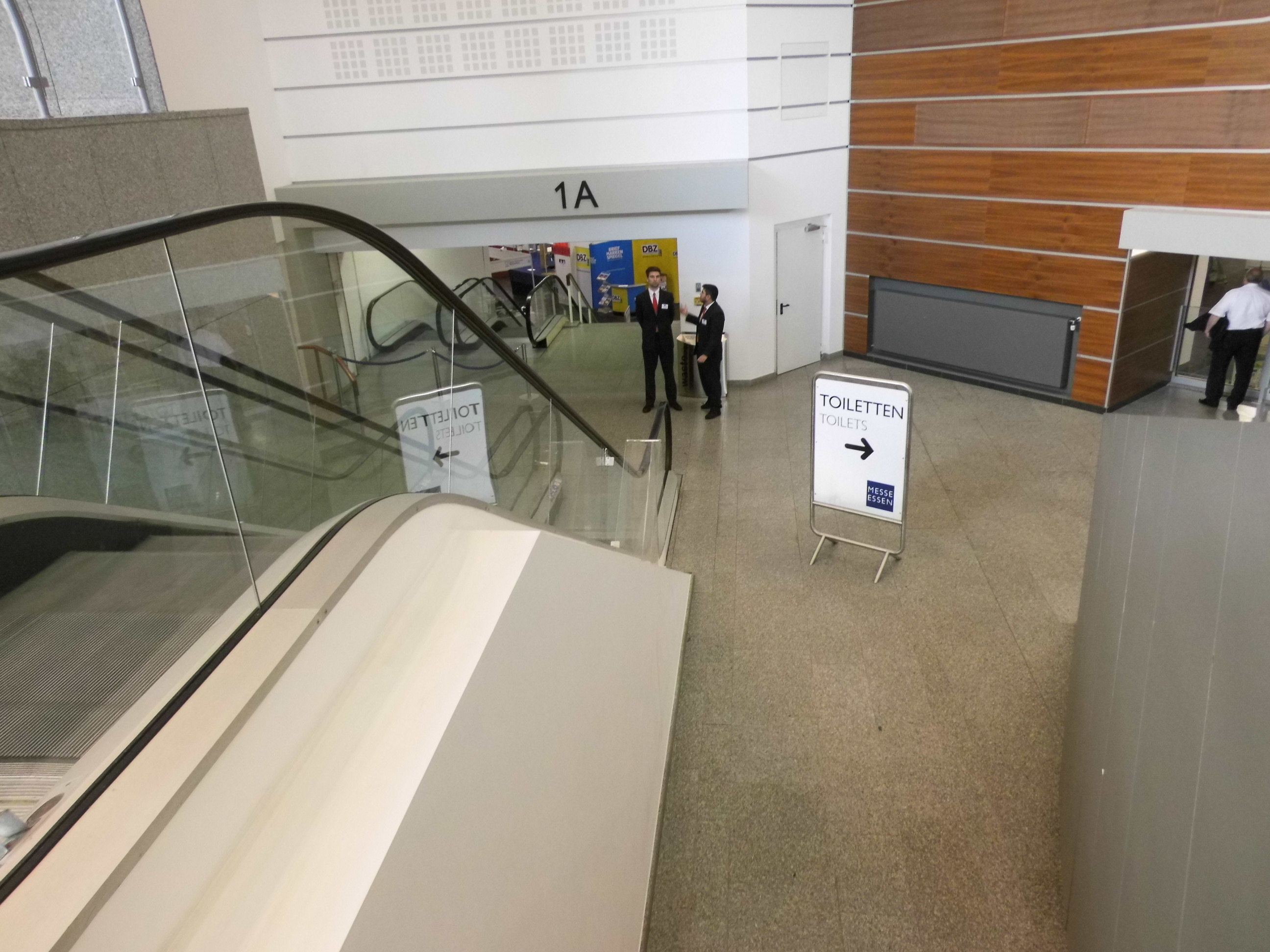 Halt, da waren doch schon Besucher und haben auf die Öffnung gewartet! Die Messe öffnet zwar erst um 10 Uhr für die Besucher, aber die 3 Herrschaften konnten gar nicht früh genug dort sein. Um 9 Uhr wird lediglich für die Standmitarbeiter mit besonderen Messeausweisen Einlass gewährt.