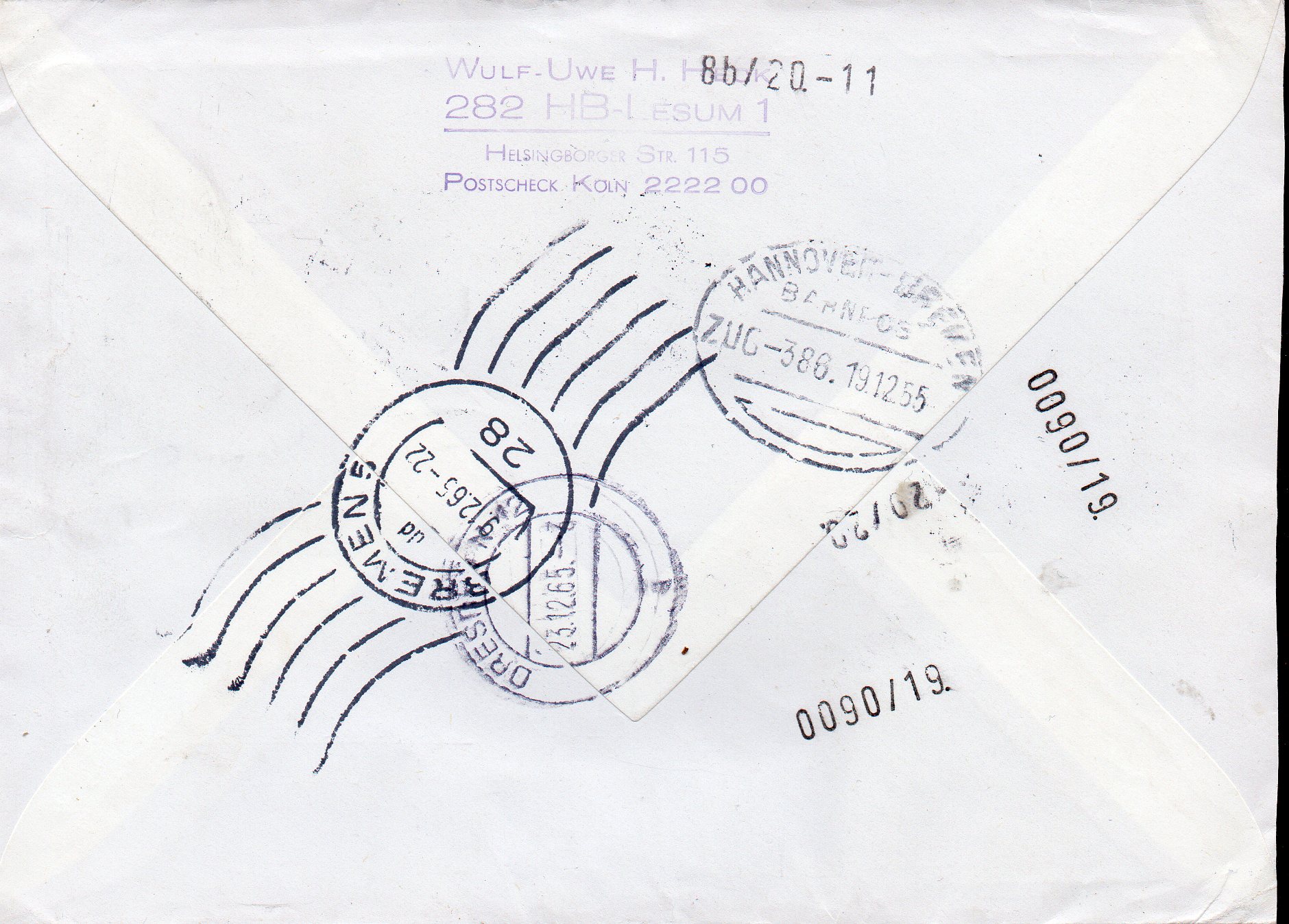 das scheinen Stempel von den bearbeitenden Eilbotenstellen der Beförderungswege zu sein. Ich selber habe Anfang der ´80-er mir selber haufenweise ATM-Eilbelege geschickt und da war immer (nur) der Balkenstempel 2400/Datum(Tag)/Uhrzeit (neben dem Tagesstempel) abgeschlagen. Nun war damals die Postleitzahl von Lübeck 2400 und ich bin davon ausgegangen, dass es die Lübecker Eilbotenstelle ist. Diese Briefe sind ja nicht im normalen Postbetrieb gelaufen sondern immer schnellstmöglich befördert worden. Ferner liegen mir Eilbriefe aus der DDR hierher vor, die auch ähnliche wie von Dir gezeigte Stempel tragen, da kommt der Verdacht auf, dass es Eilbotenstellen der DDR sein könnten. Schau doch mal in Deinem Belege-Bestand nach, ob auf Briefen innerhalb der damaligen BRD auch mehrere solche Balkenstempel zu finden sind. Und wenn ja, wie die aussehen. Manchmal kann man da ja auch schon über die Postleitzahlen etwas ablesen. Ich schaue auch noch mal nach, ob ich noch weiter als nur innerhalb Lübecks gelaufene Eilbelege finde. Und wenn dann vielleicht "dieses Jahr" noch mal mein neuer PC einsatzbereit sein sollte, kann ich auch mal wieder Bilder zeigen, meine derzeitige Krücke bringt´s ja leider nicht mehr...