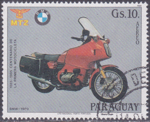 Auf dieser Marke aus Paraguay zum Jubiläum "100 Jahre Motorräder" (MiNr 3822) wird ein BMW-Motorrad aus dem Jahre 1980 gezeigt.