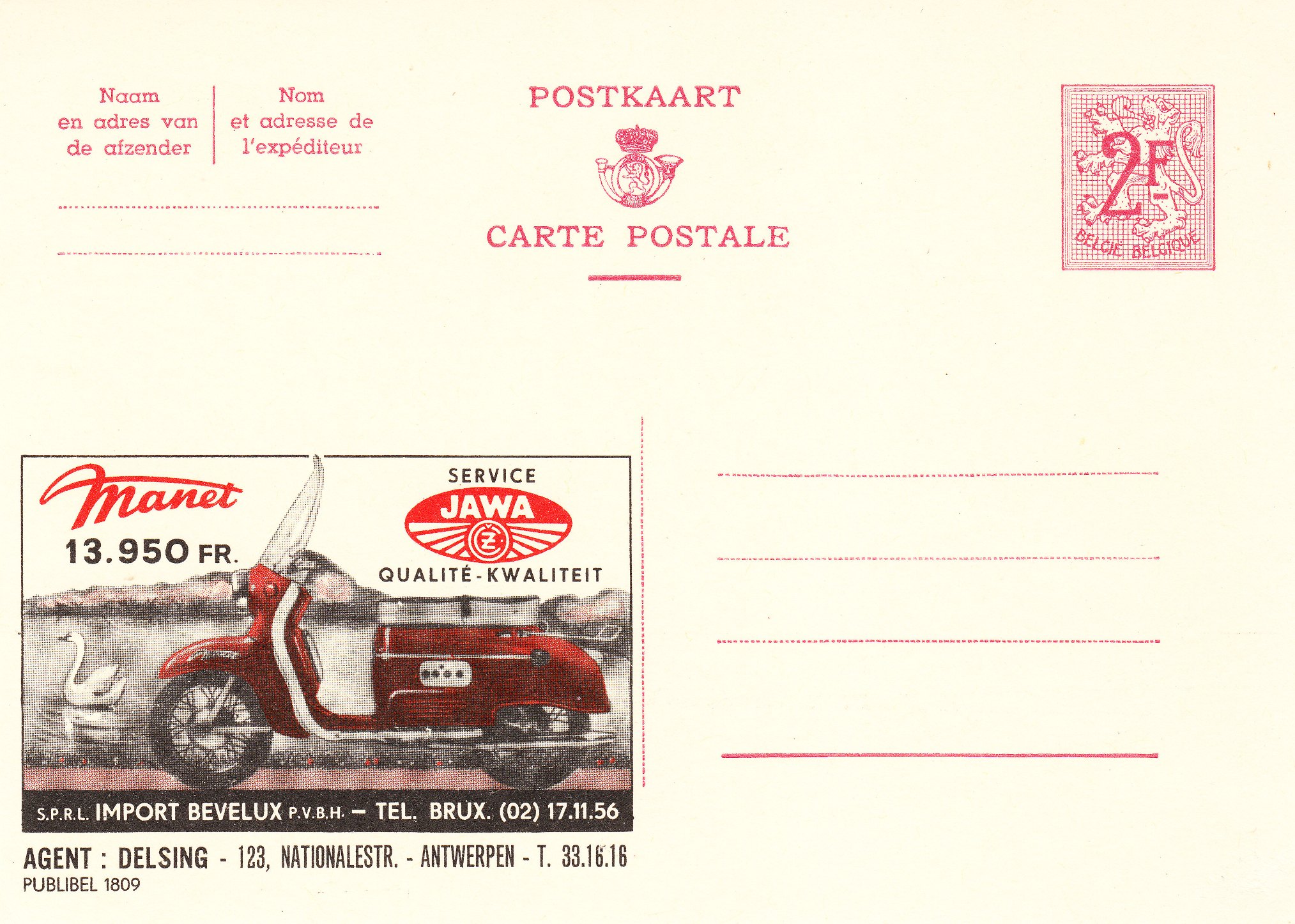 Diese Postkarte aus Belgien zeigt einen Motorroller des Herstellers MANET: