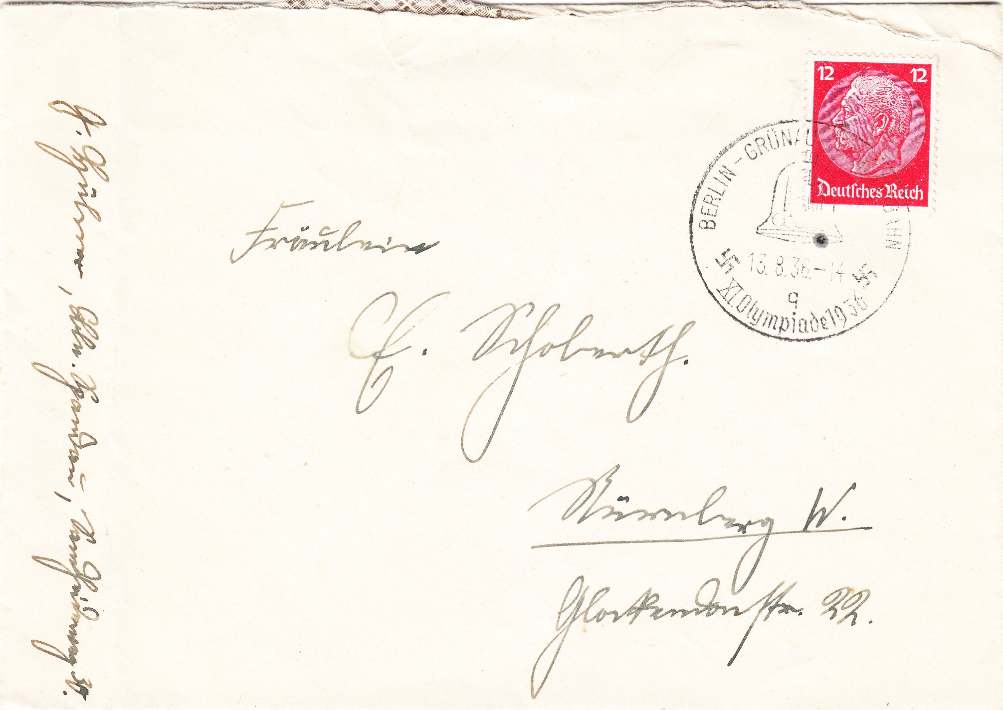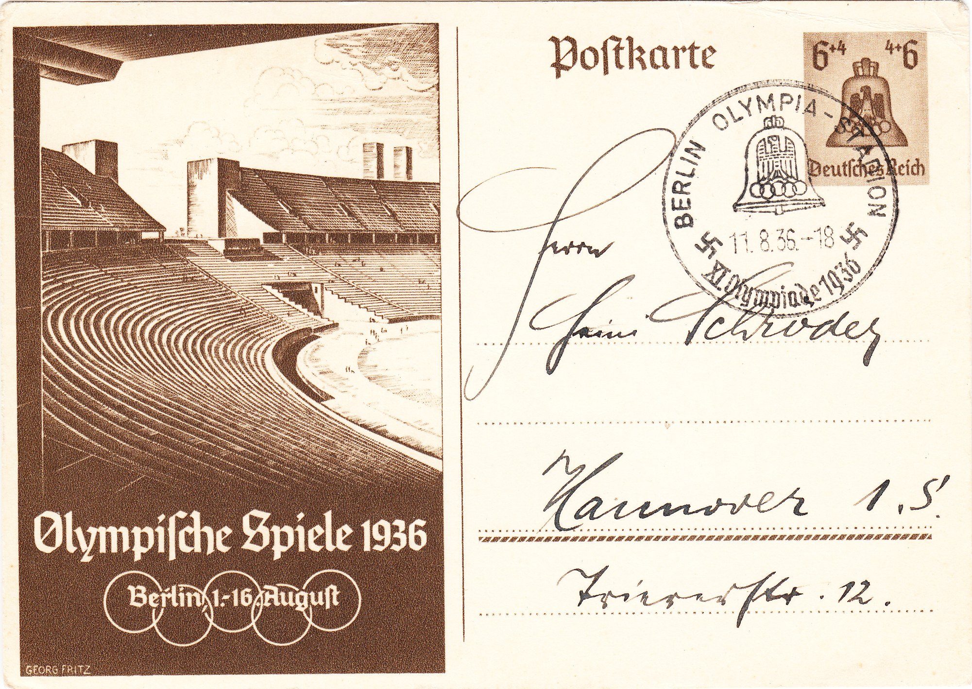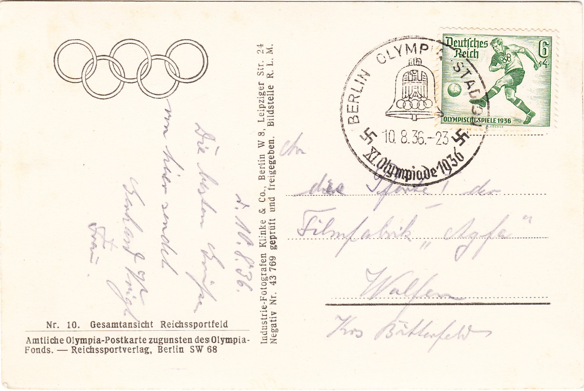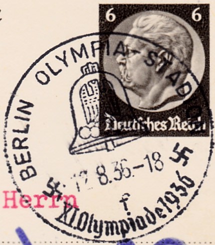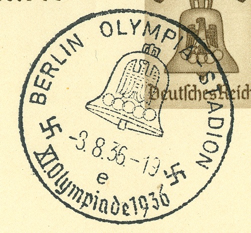 Hier ein Sonderstempel "BERLIN OLYMPIA - STADION" mit dem Kennbuchstaben "n" vom 07.08.1936: