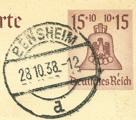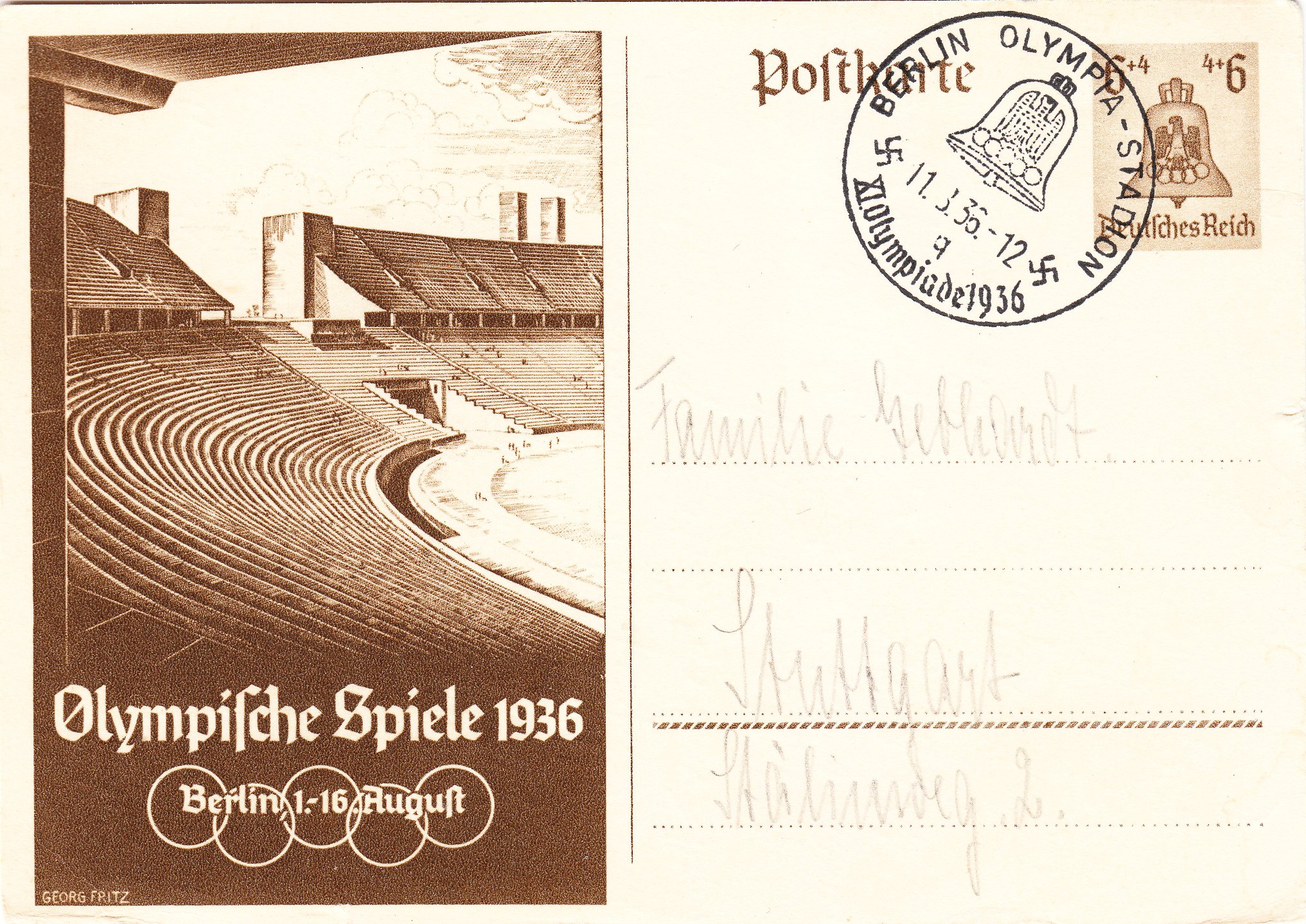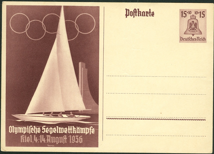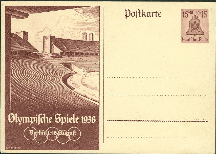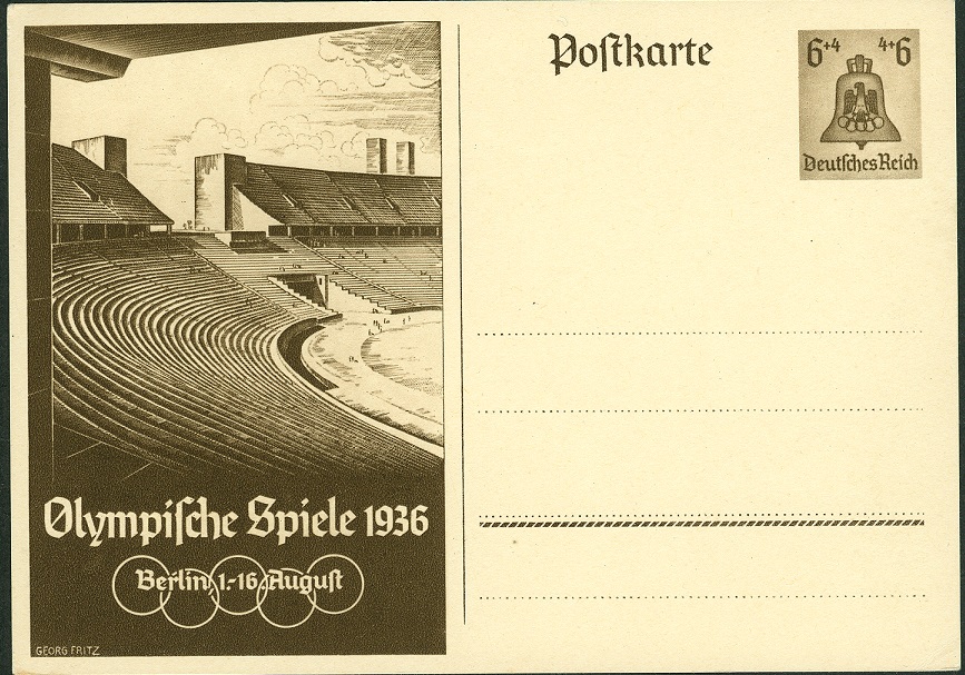 hier wieder eine gelaufene P 259, aufgegeben am 11.08.1936 um 12 Uhr in BERLIN OLYMPIA-STADION, Handwerbestempel mit Kennbuchstabe "q":