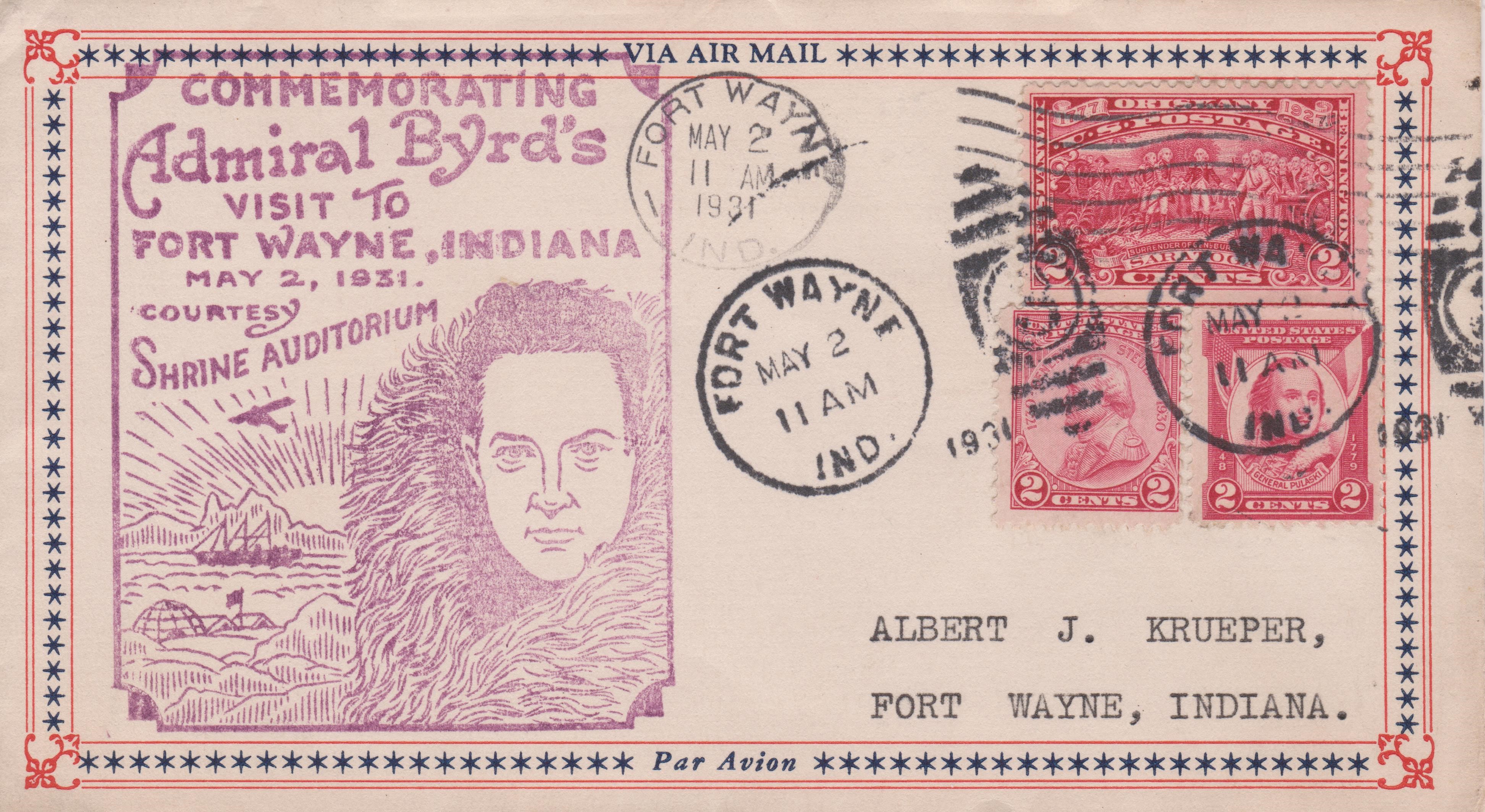 Dieser Ortsbrief vom 02.05.1931 dokumentiert den Besuch von Admiral Byrd in FORT WAYNE, INDIANA: