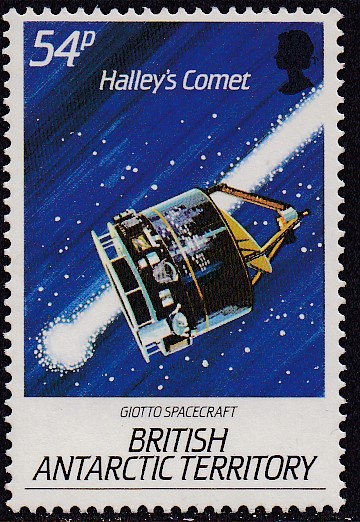 Der Wert zu 22 P der Ausgabe zum Halleyschen Kometen (MiNr 133) zeigt eine Ansicht der Forschungsstation "Halley".
