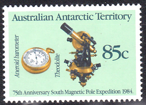 Zu dieser Serie gehört auch noch ein zweiter Wert (MiNr 62) mit der Abbildung eines Barometer und eines Theodoliten.