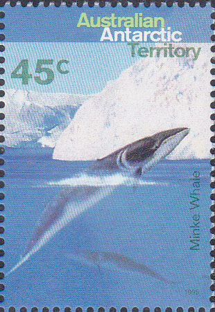 Aus der gleichen Serie stammt diese Marke (MiNr 104) mit zwei Zwergwalen.