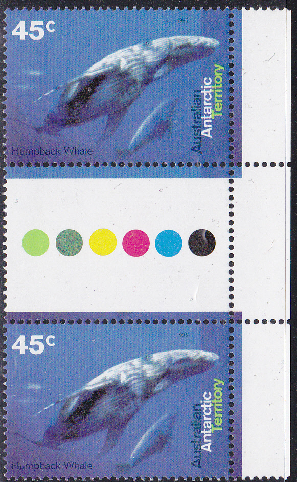 In der gleichen Serie ist auch noch eine weitere Marke zu 45 Cent (MiNr 102) mit einem Buckelwal erschienen.