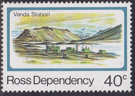 Der Wert zu 40 Cent aus der Freimarkenserie "Leben in der Antarktis" (MiNr 19) bildet die Vanda-Station ab.
