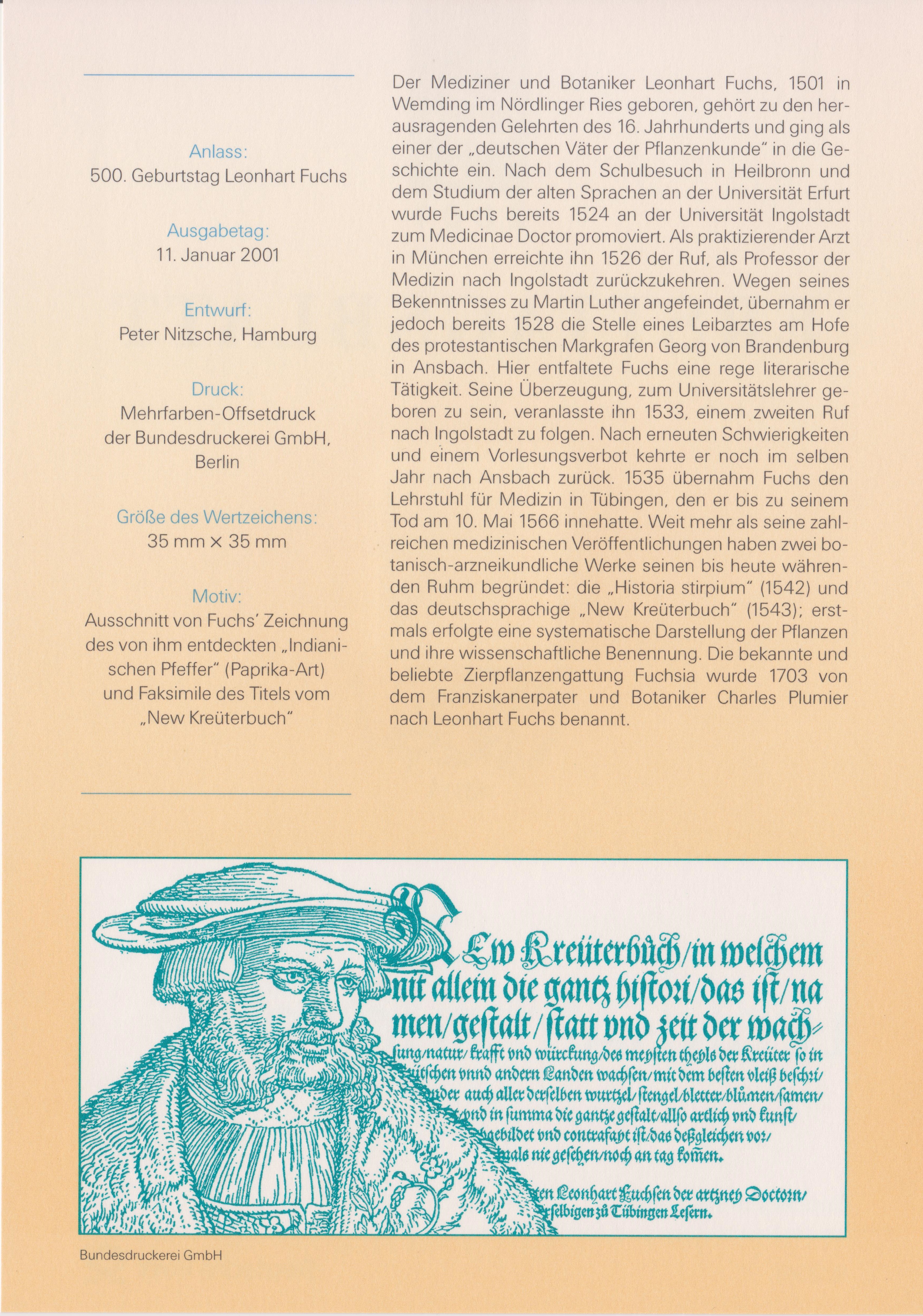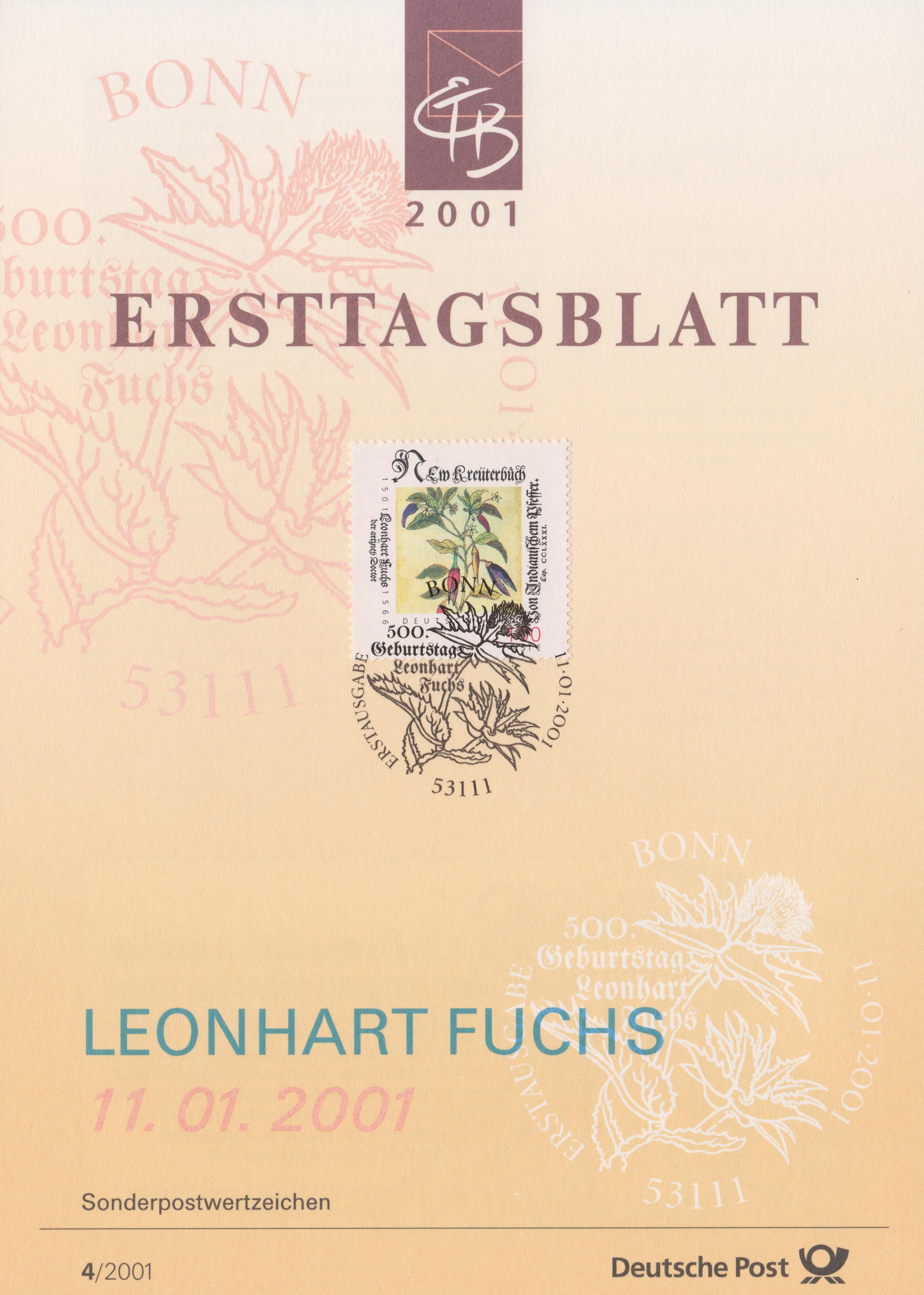 Bund MiNr. 2161 erschien am 11.01.2001 zu seinem 500. Geburtstag, hier auf dem in einer Auflage von 200 000 Exemplaren erschienenen ETB 4/2001: