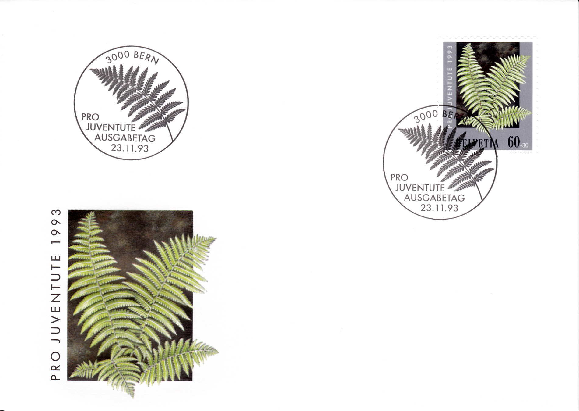 Aus der Schweiz ist diese Marke (MiNr 1513) mit einem Echten Wurmfarn (Dryopteris filix-mas).