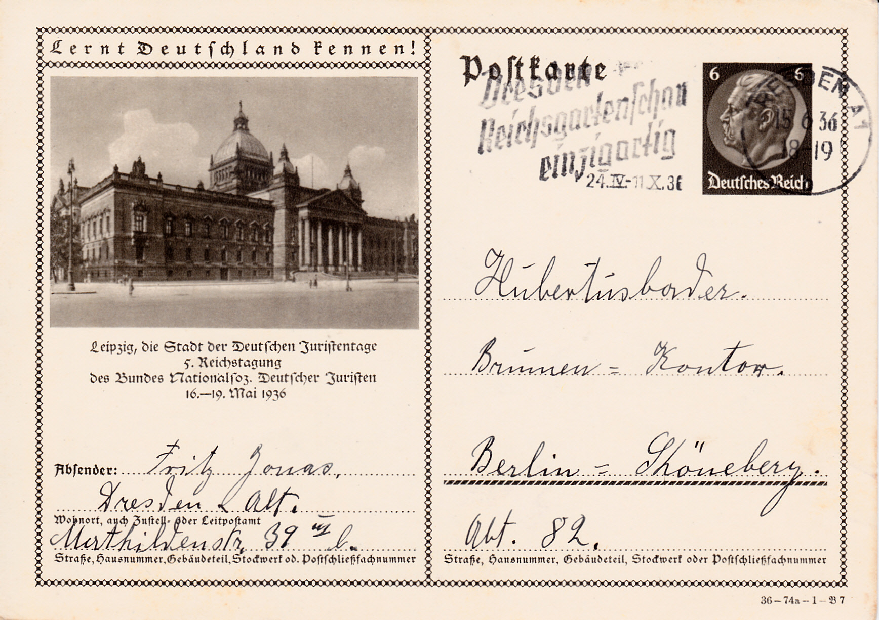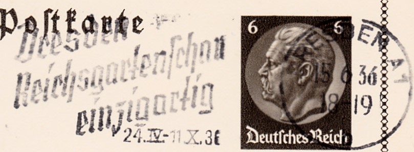 24.04.1936 bis 11.10.1936 statt, was der Werbeeinsatz dieses Maschinenstempels dokumentiert: