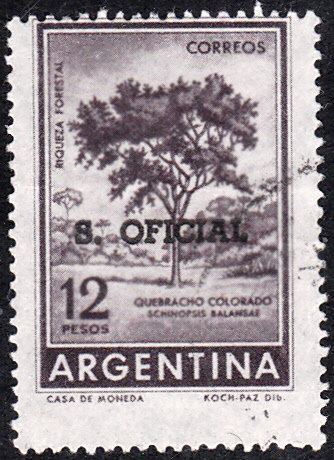 Auf dieser argentinischen Dienstmarke (MiNr 103) wird ein Roter Quebracho abgebildet.