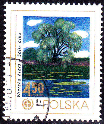 Diese Marke aus Polen (MiNr 2573) bildet eine Silberweide (Salix alba) ab.