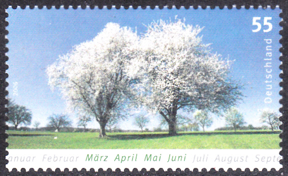 Diese Marke der Deutschen Post (MiNr 2532) zum Thema "Frühling" zeigt blühende Kirschbäume.