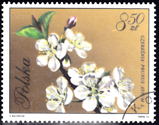 Aus Polen kommt eine Marke (MiNr 2141) mit Kirschblüten (Prunus avium).