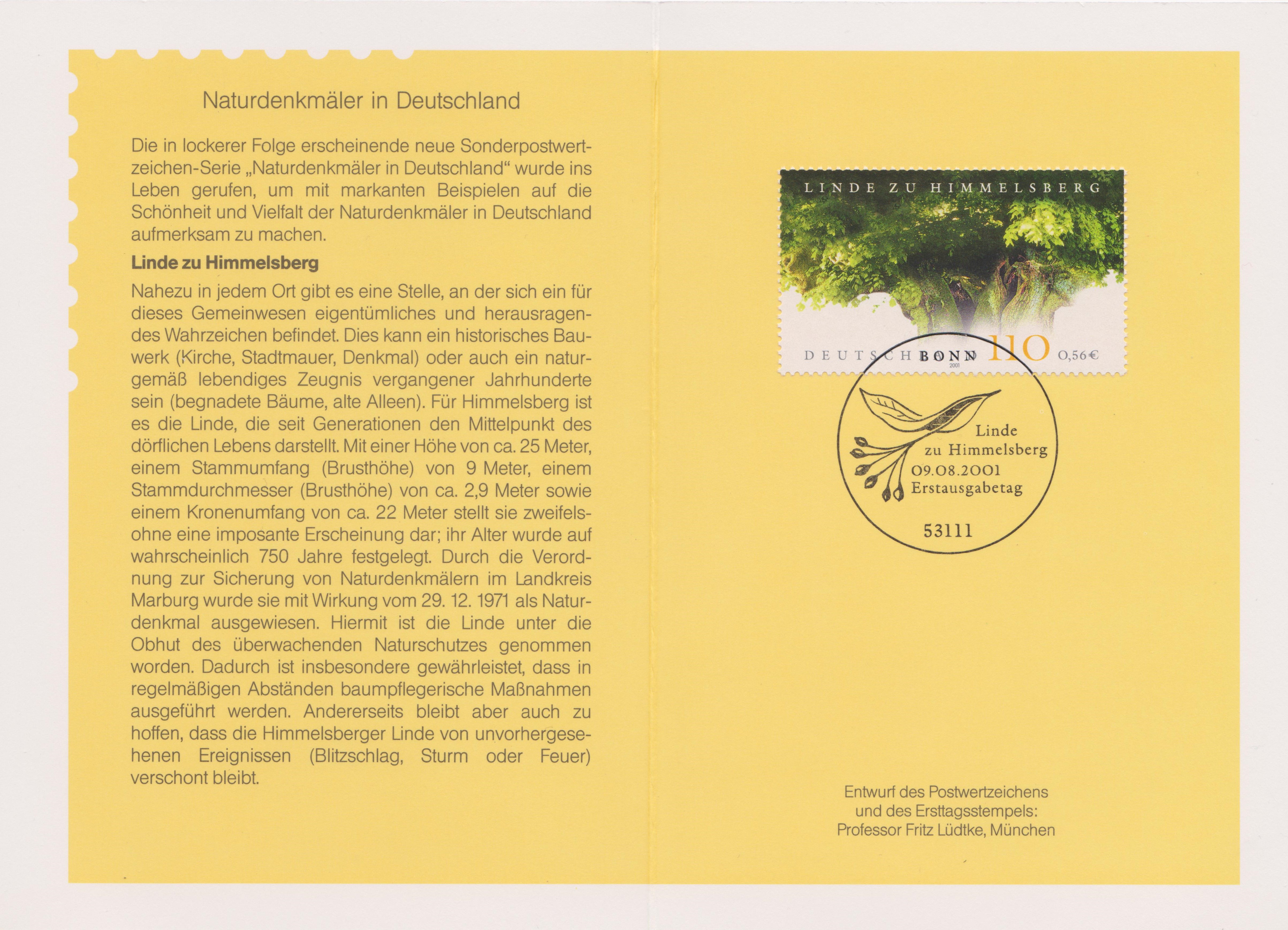 Bund MiNr. 2208 mit der Linde zu Himmelsberg auf ETB 35/2001: