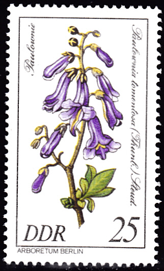 In der DDR ist eine Marke (MiNr 2576) mit einem blühenden Zweig eines Blauglockenbaumes (Paulownia tomentosa) erschienen.