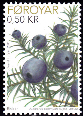 In Dänemark Färöer ist ebenfalls eine Marke mit einer Abbildung zum Wacholder erschienen. Die Marke zeigt einen Zweig des Zwergwacholder (Juniperus communis alpina). Dieser kommt auf den Färöer-Insel meist in Strauchform vor.