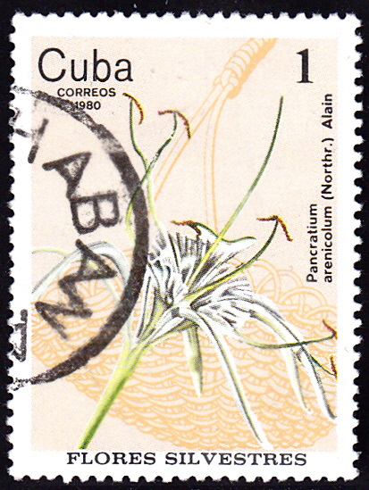Auf dieser Marke aus Kuba (MiNr 2518) ist eine Blüte der Hymenocallis caribaea zu sehen. Es gibt mehrerer Synonyme, darunter auch Pancratium arenicolum (wird auf dieser Marke als Name angegeben).