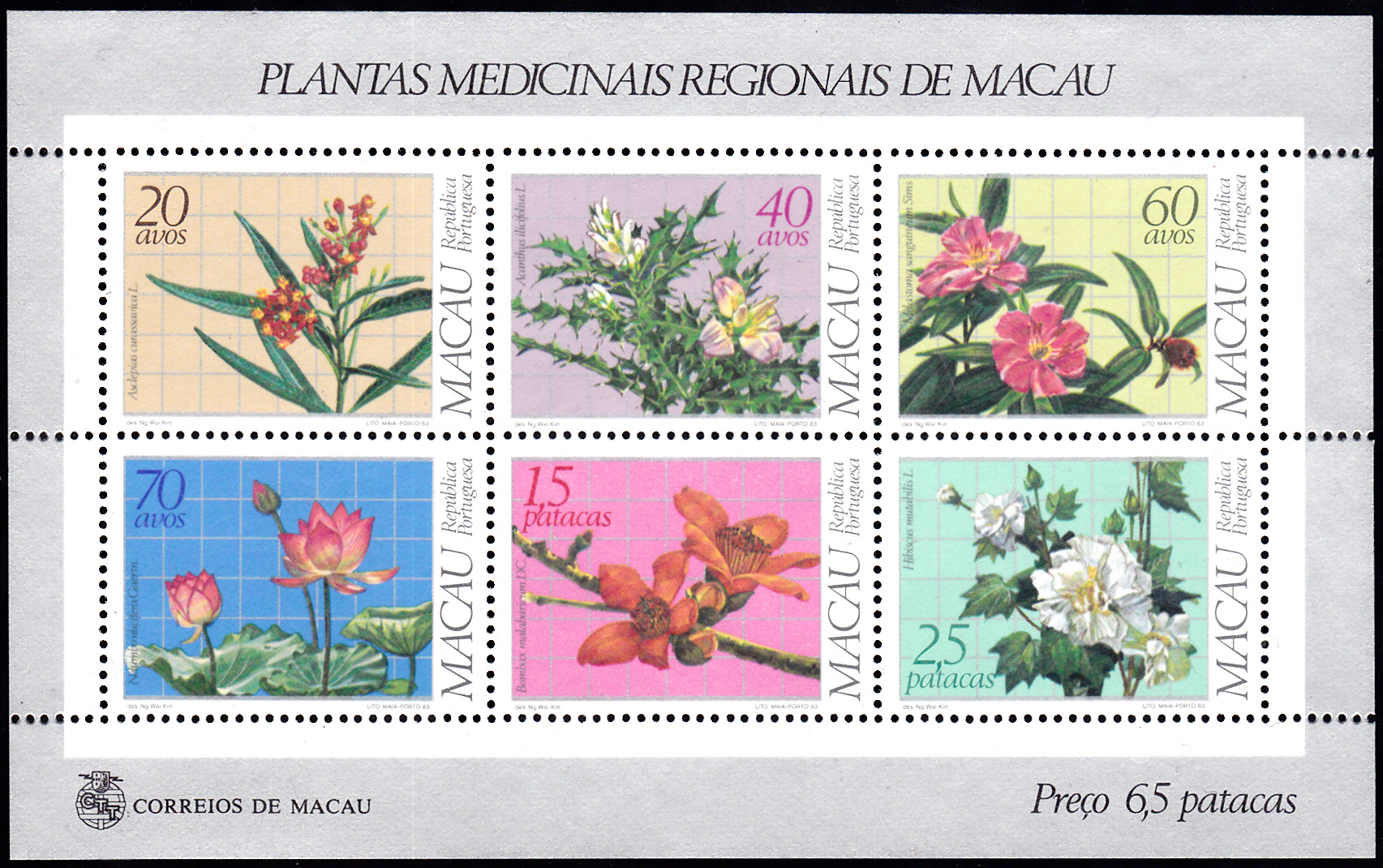 In Macau erschien 1983 diese Marke (MiNr 505) mit einer Indianer-Seidenpflanze (Asclepias curassavica).