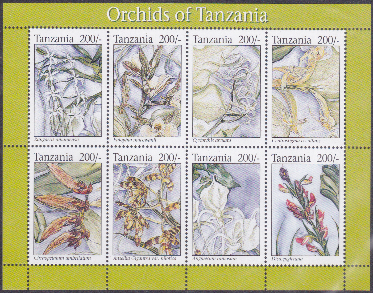 Aus Tansania kommt diese Marke (MiNr 1875) mit der Abbildung von einer Ansellia africana (Ansellia gigantea var. nilotica)
