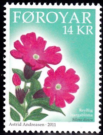 Auf dieser Marke aus Dänemark Färöer (MiNr 724) wird eine Rote Lichtnelke (Silene dioica) gezeigt.