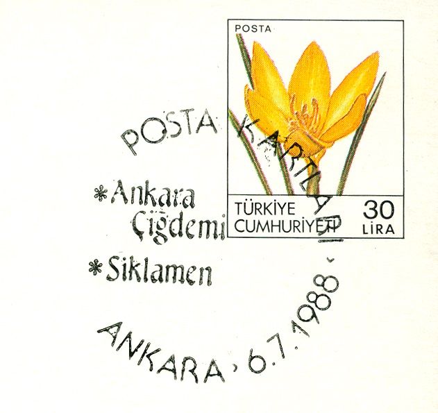 Ein Ankara Krokus (auch Kleinasiatischer Krokus) ist das Motiv auf einer türkischen Postkarte.