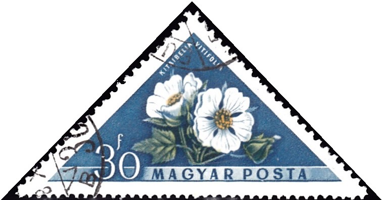 Auf dieser Marke aus Ungarn sind Blüten der Weinblättrigen Kitaibelie (Kitaibela vitifolia) zu sehen.