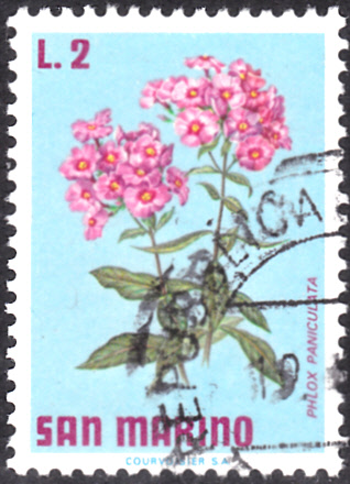Aus San Marino kommt diese Marke (MiNr 985) mit dem schon beschriebenen Hohe Stauden-Phlox (Phlox paniculata).