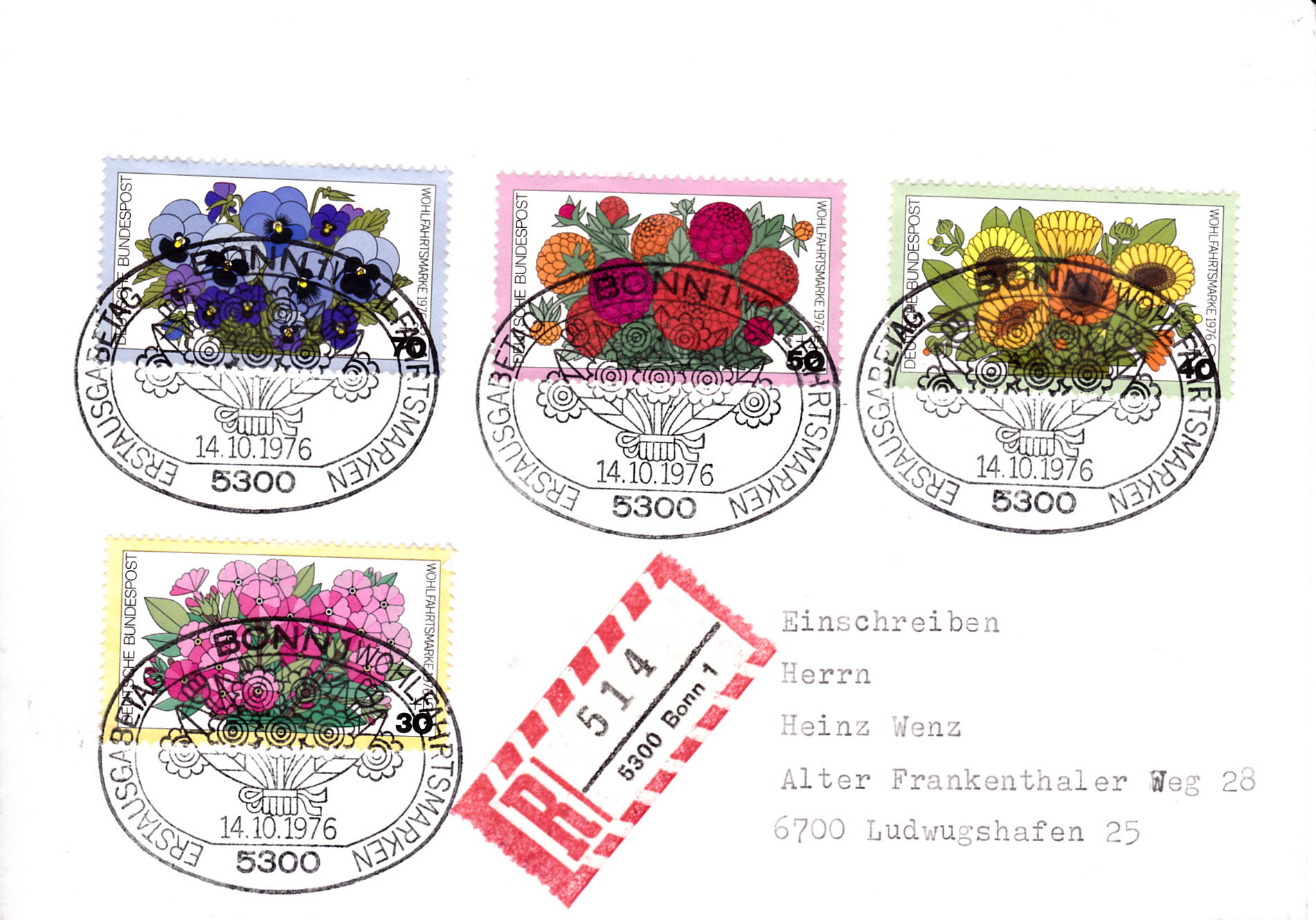 Brief per Einschreiben vom Ersttag mit dem kompletten Satz und Ersttagstempel Bonn. Der Brief ist portogerecht frankiert.