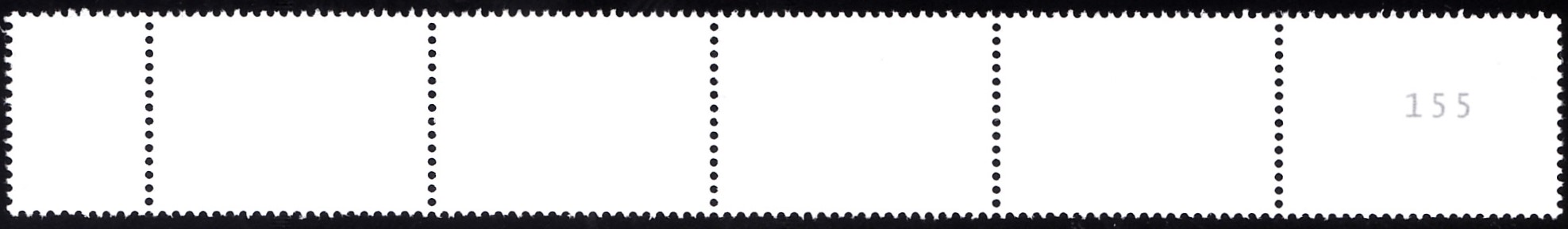 Die Marke gibt es auch in der Rolle mit 200 Marken. Hier zeige ich einen Sechserstreifen mit fünf Marken und einem Zwischenfeld mit EAN-Codierung.