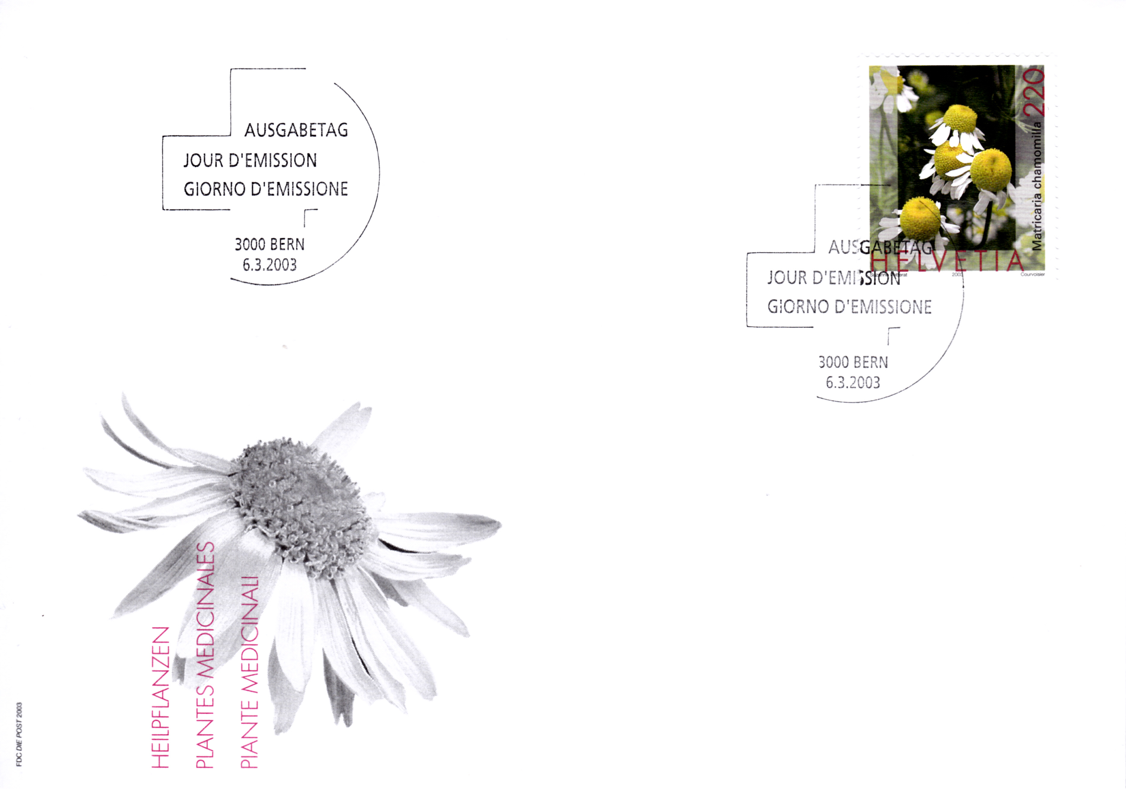 Auf dieser Marke aus der DDR (MiNr 2289) sind Blüten der Echten Kamille (Matricaria chamomilla) abgebildet.