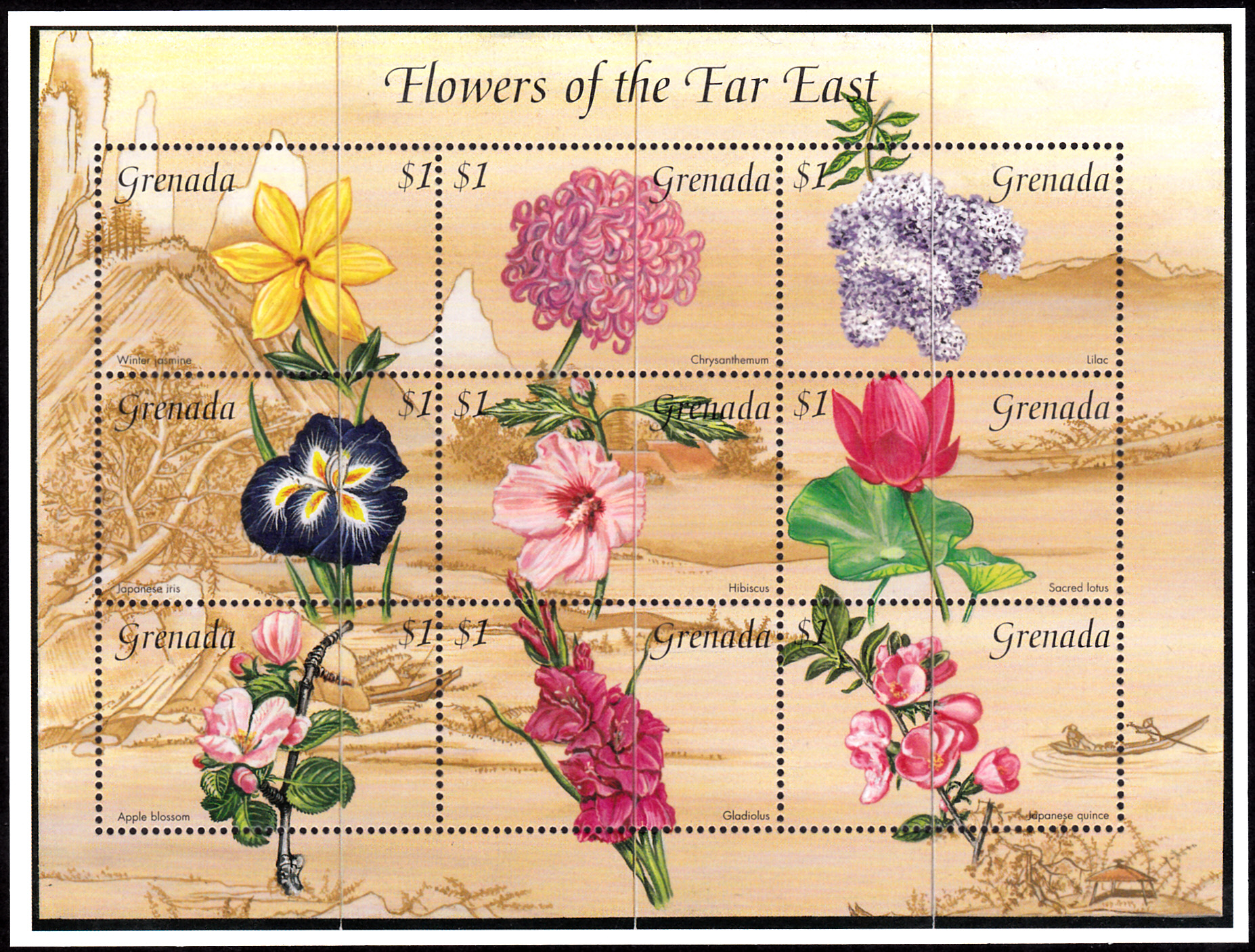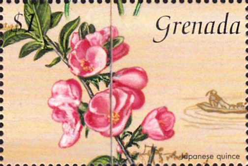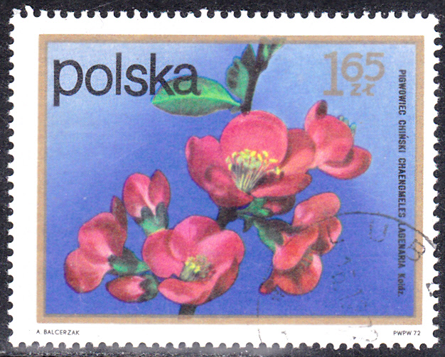 Eine Marke aus Polen (MiNr 2217) bildet Blüten der Chinesische Zierquitte (Chaenomeles lagenaria) ab.