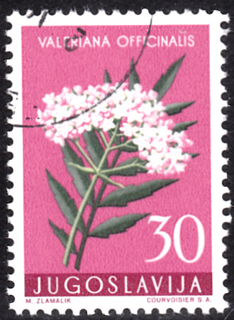 Auf dieser Marke aus Jugoslawien (MiNr 816) wird ein blühender Zweig des Echten Baldrian (Valeriana officinalis) gezeigt. Bei Michel wird er Gemeiner Baldrian (Valeriana officinale) genannt.