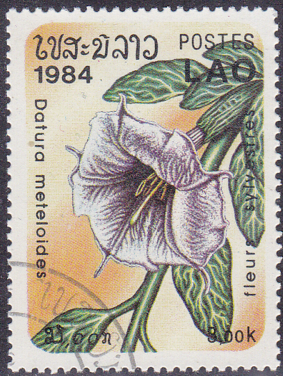 Aus Laos kommt diese Marke (MiNr 747) mit einer Blüte des Großblütigen Stechapfel (Datura inoxia). Auch der Name Datura meteloides DC. ex Dunal wurde unter anderem auf diese Art bezogen (wie hier auf dieser Marke), er ist in seiner Anwendung aber unklar und wird heute nicht mehr verwendet.