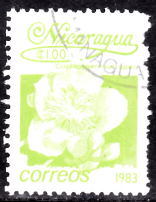 Auf dieser Marke aus Nicaragua (MiNr 2362) wird eine Blüteneiner nicht näher benannten Art (Cochlospermum sp.) aus der Gattung Cochlospermum gezeigt.