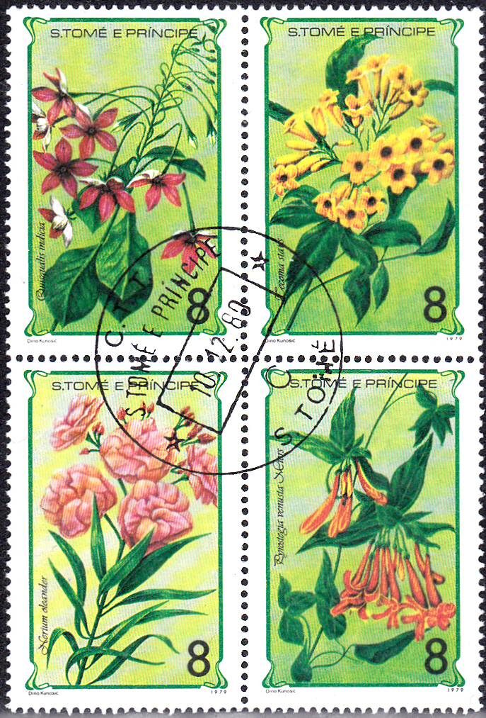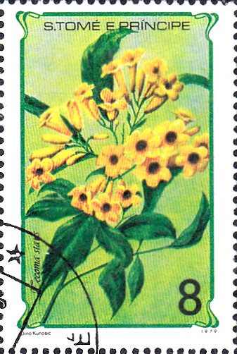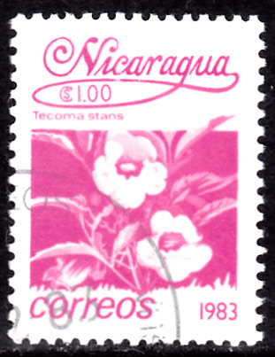 Auf dieser Marke aus Nicaragua (MiNr 2365) sehen wir Blüten einer Gelben Trompetenblume (Tecoma stans).