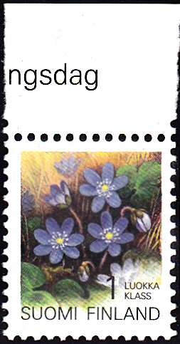 Aus Finnland kommt diese Marke (MiNr 1164) mit Leberblümchen (Hepatica triloba).