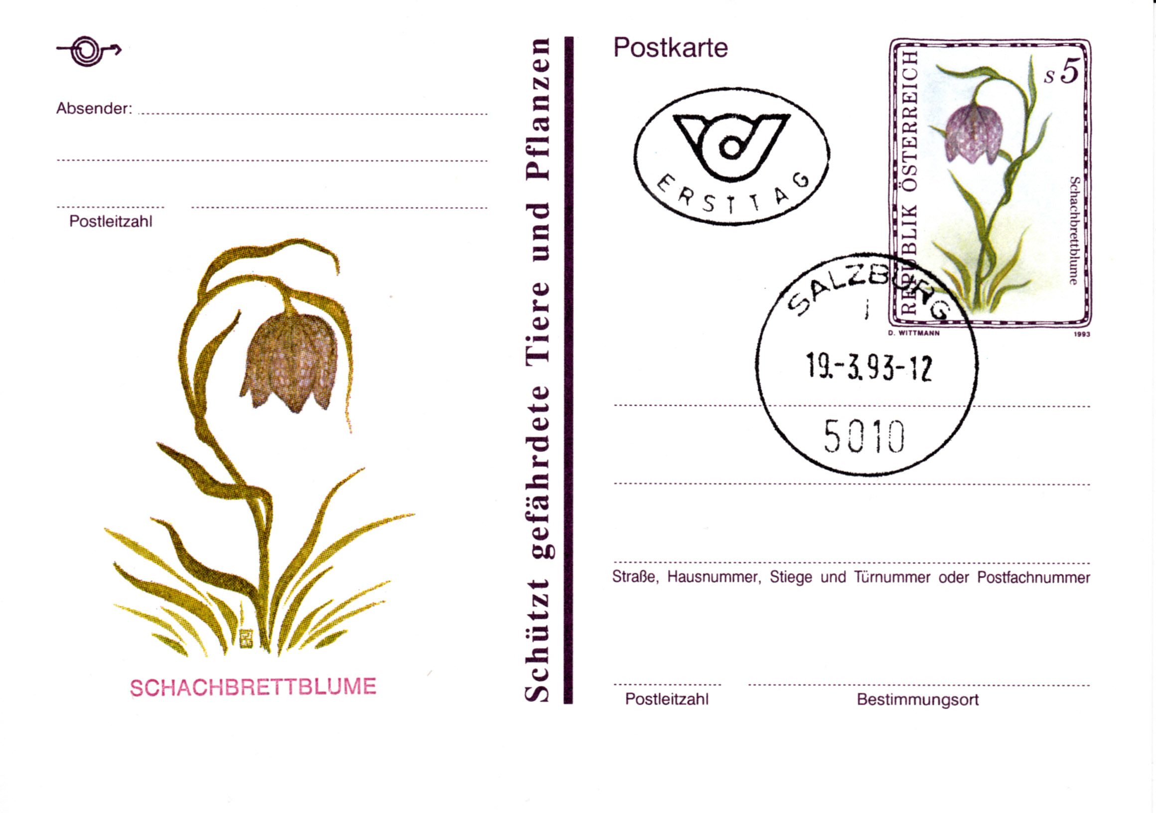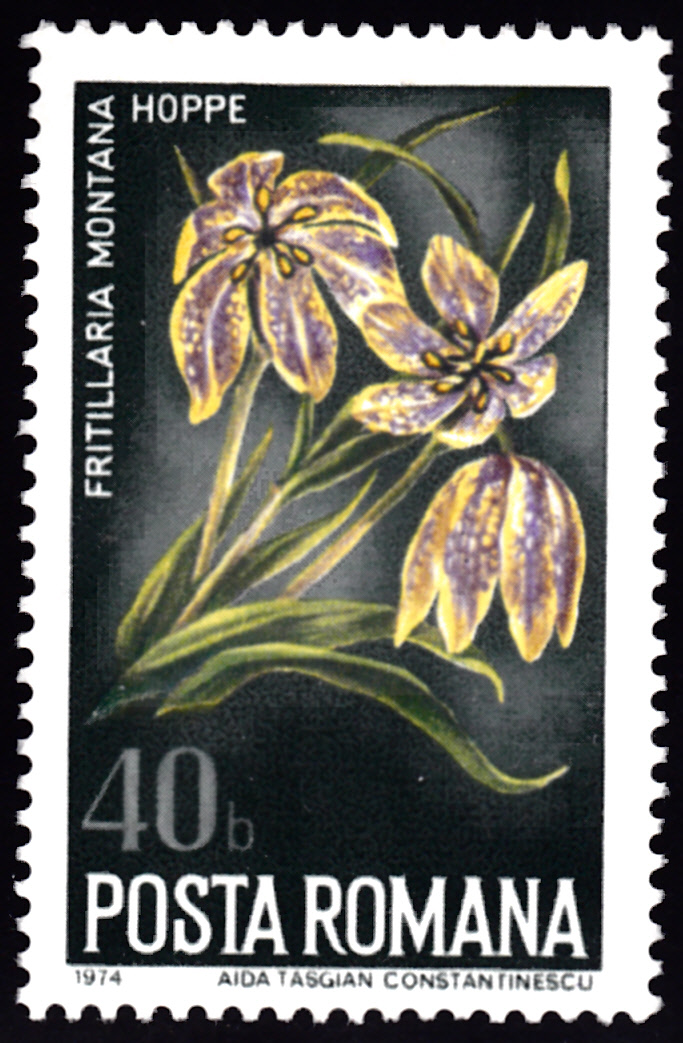 Auf dieser Marke aus Rumänien (MiNr 3225) sind Blüten der Fritillaria montana abgebildet. Bei Michel wird als Name Gebirgs-Schachblume (Fritillaria montana) verwendet.