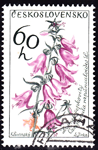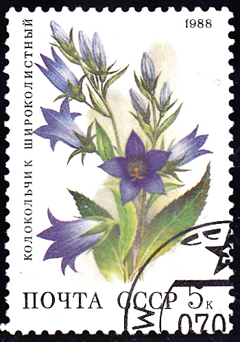 Diese Marke aus der Sowjetunion (MiNr 5847) bildet eine Breitblättrige Glockenblume (Campanula latifolia) ab.