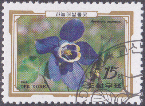 Auf dieser Marke aus Korea-Nord (MiNr 3051) ist eine Fächerakelei (Aquilegia flabellata, Syn.: Aquilegia japonica und mehr als 20 weitere) zu sehen.