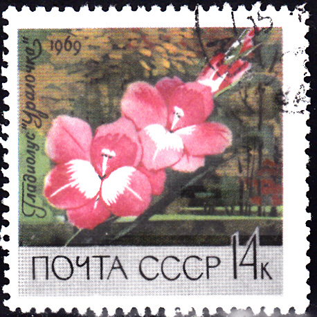 In der Serie "Zentraler botanischer Garten der Akademie der Wissenschaften der UdSSR, Moskau" erschien in der Sowjetunion diese Marke (MiNr 3623) mit einer Blüte einer Gladiole „Uralotschka“ (Gladiolus hybr.).