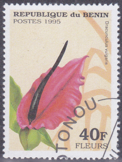 Eine Marke aus Benin (MiNr 697) zeigt die Blüte einer Gemeinen Drachenwurz (Dracunculus vulgaris).