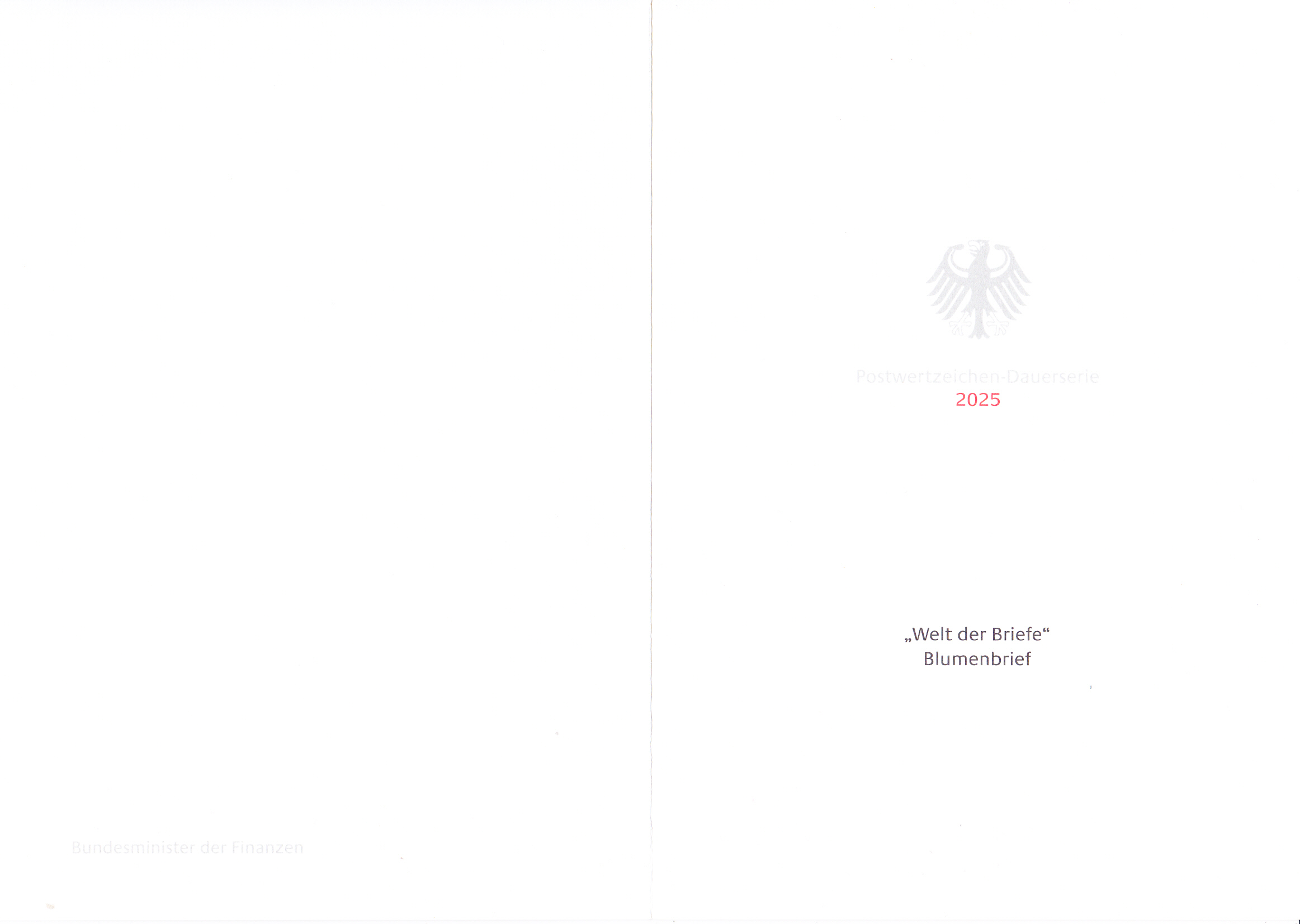 Ministerkarte des Bundesministers für Finanzen mit zwei Marken mit dem Motiv "Briefumschlag mit orangefarbenem Milchstern (Ornithogalum dubium)" (MiNr 3898) aus der Dauerserie "Welt der Briefe" und den beiden Ersttagsonderstempel Bonn und Berlin.