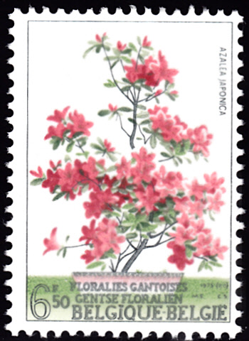 Auf dieser Marke (MiNr 1582 I) aus einer belgischen Serie zur Genter Blumenschau 1970 werden Blüten einer Azalee (Rhododendron simsii) gezeigt.